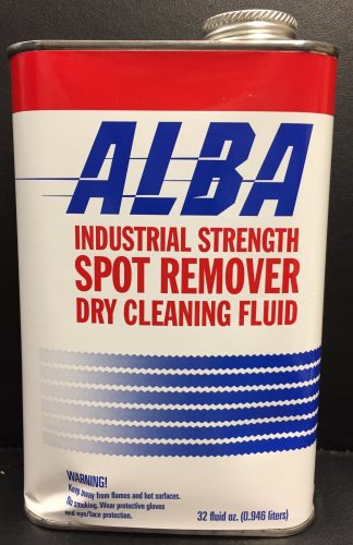 Alba Industrial Strength Spot Remover Dry Cleaning Fluid is made to remove stains that are not soluble in water; including oil, grease, graphite, tar, adhesives, paint, oily foods, make-up, shoe marks, and others.