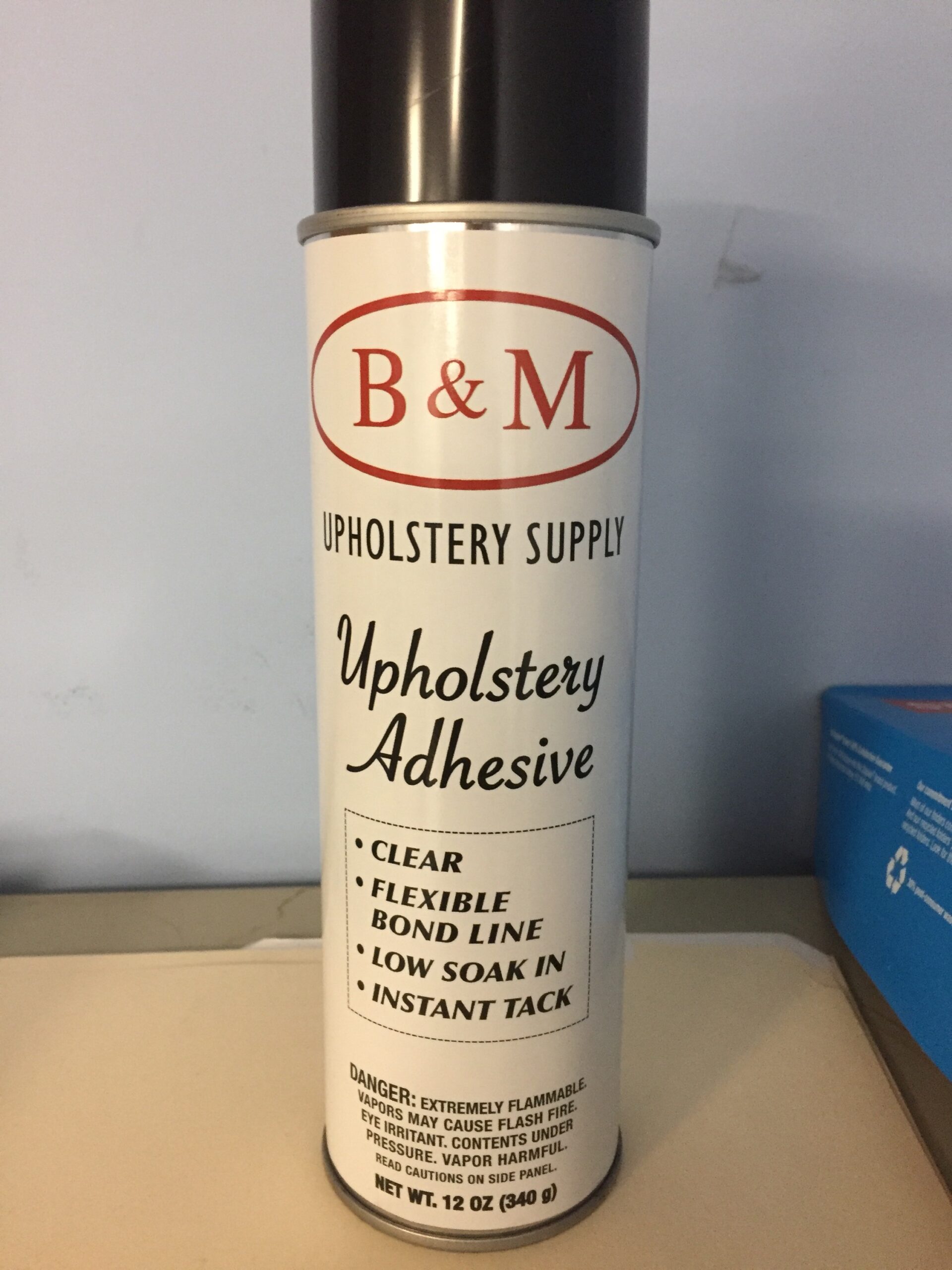 B&M Foam & Fabric Adhesive sprays and dries white.