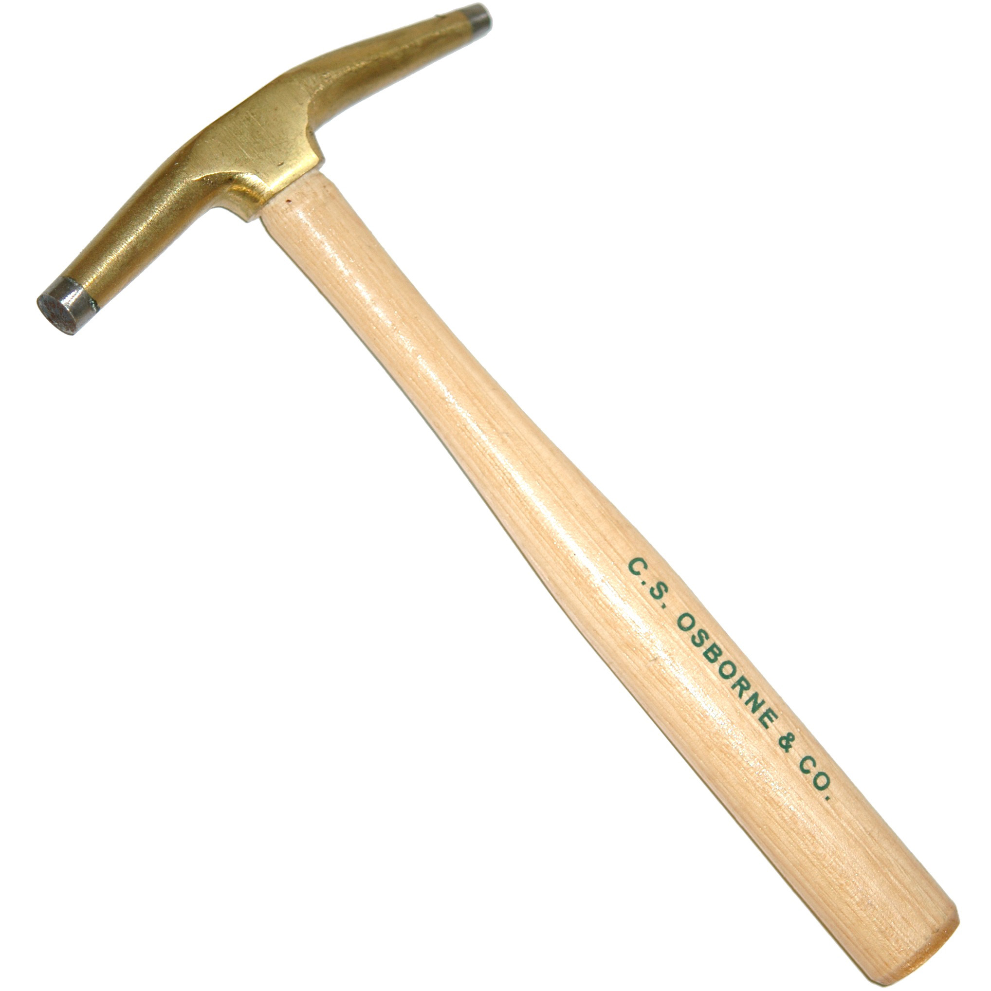 The Osborne #33 hammer features a solid bronze head that is steel tipped at one end with permanent magnet. It has a large face diameter of 1/2″ and a small face diameter of 5/16″. The head measures 5-1/2″ and the hammer weighs 7 oz.