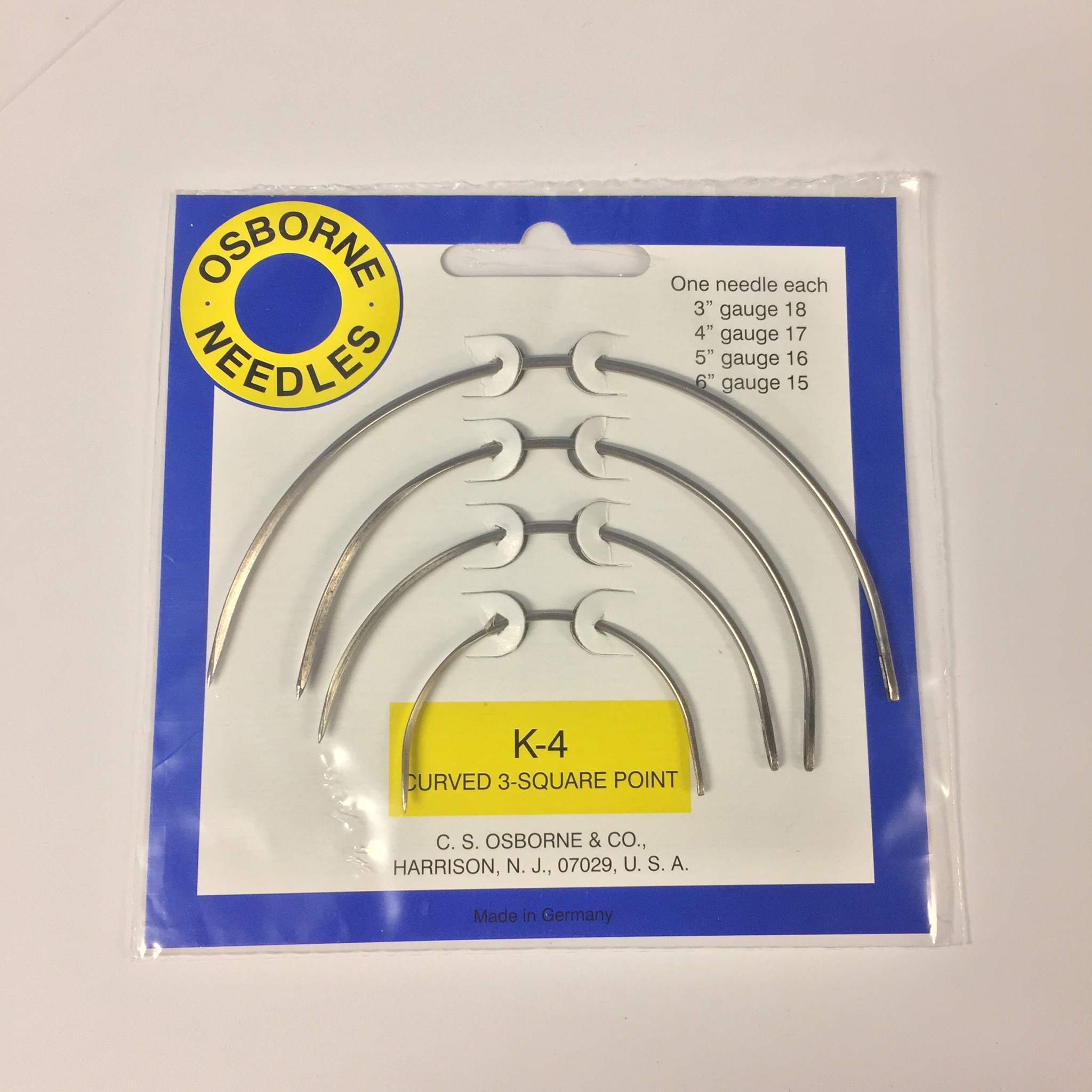 Assorted needle variety includes 1 each of the following Curved 3-Square Point needles [also referred to as “diamond point needles”] :