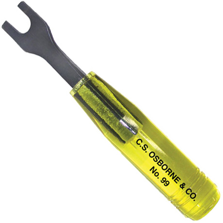 This tool reduces risk of chips and scratches to glass windows. It is specifically designed to fit trim clips over the studs, and limits glass breakage. It is a practical tool for placing trim retainer clips over studs welded around the window shields and rear window openings.